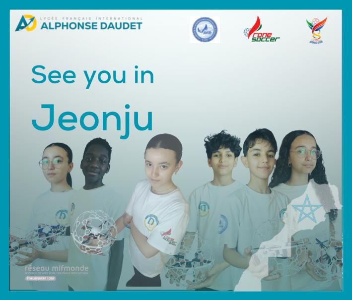 Photo prise à Jeonju, lors de la participation de l'équipe de drone soccer du Lycée Français International Alphonse Daudet, à la coupe du monde de dronde soccer - Première équipe marocaine représentant le Maroc !